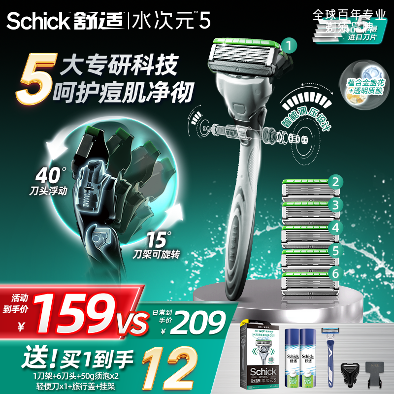 【痘敏肌人气款】Schick舒适水次元5手动剃须刀刮胡刀6刀头送礼推荐