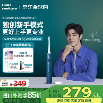 飞利浦【肖战推荐】声波电动牙刷钻石3系6730升级款 【独有新手模式&德国进口刷头】 X5181 星云蓝