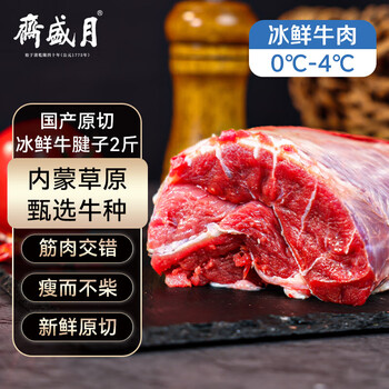 月盛斋【冰鲜牛肉】国产牛腱子净重2斤 内蒙牛肉生鲜鲜肉 中华老字号