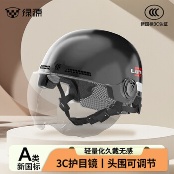 绿源(Luyuan)电动车头盔A类男女通用自行电瓶车骑行夏季半盔摩托机车安全帽 曜石黑【双层+PC短镜】3C新国标 均码