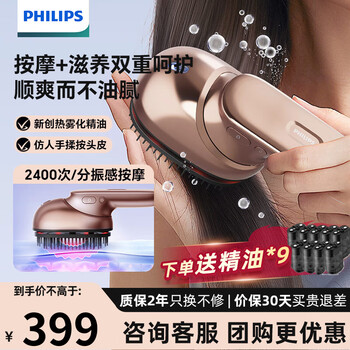 飞利浦(PHILIPS)按摩梳 升级版头皮家用按摩器 无线便携高频微震按摩 头皮护发护理柔顺可雾化精油 伴手礼物