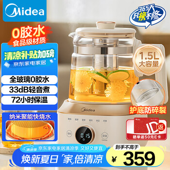 美的(Midea)全玻璃养生壶全自动烧水壶母婴恒温电热水壶花茶壶全包裹护底防碎1.5L MK-YS15B201