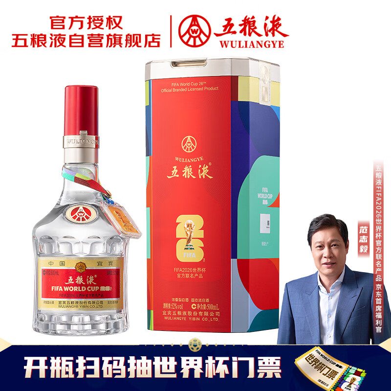五粮液 普五八代 世界杯联名 浓香型白酒 52度 500mL 单瓶 官方授权