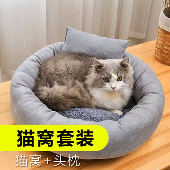 派乐特 猫窝狗窝保暖冬季秋天宠物猫咪毯垫子睡袋 灰色M+头枕