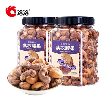 洽洽紫皮腰果大颗粒罐装零食坚果团购越南带衣腰果仁 500g*2罐