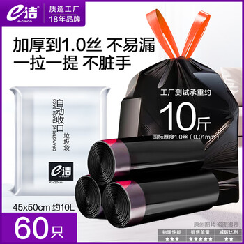 e洁背心手提式垃圾袋 垃圾袋家用办公分类垃圾桶袋 60只 10升 双面2丝45*50cm 易撕