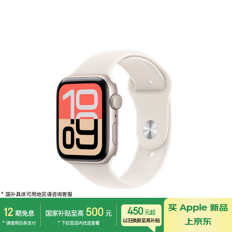Apple/苹果 Watch SE 3 智能手表GPS款44毫米星光色铝金属表壳星光色运动型表带M/L MEHK4CH/B