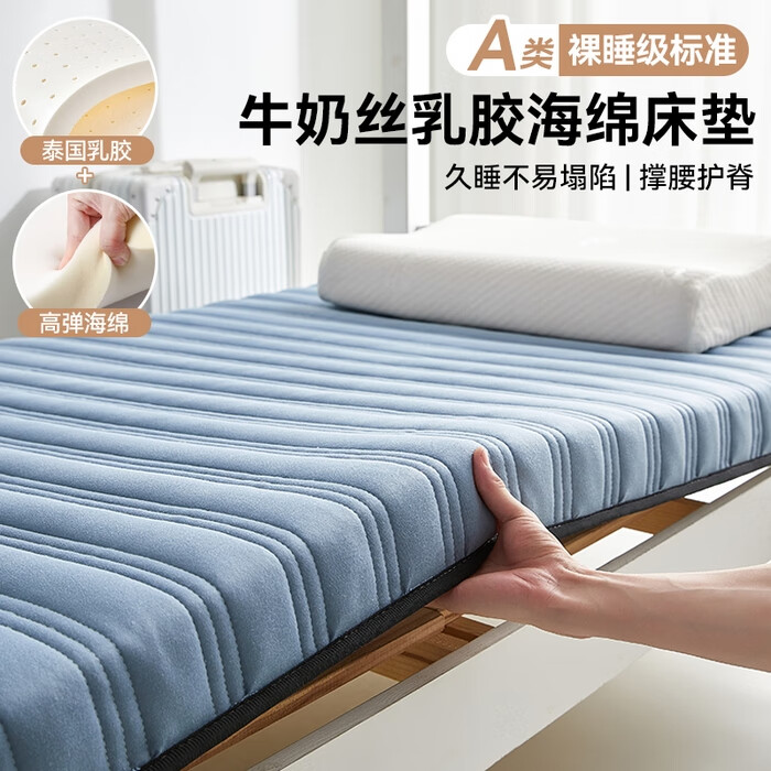 乳胶软垫抗压床垫学生宿舍租房专用榻榻米海绵垫子学生宿舍单人床 无染-宾利蓝 90*190cm-5cm