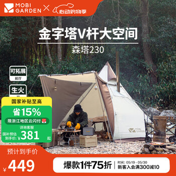 牧高笛(MOBIGARDEN)森塔 户外露营大空间带雪裙营地帐带烟囱口A塔帐篷 森塔230帐篷/晨雾白