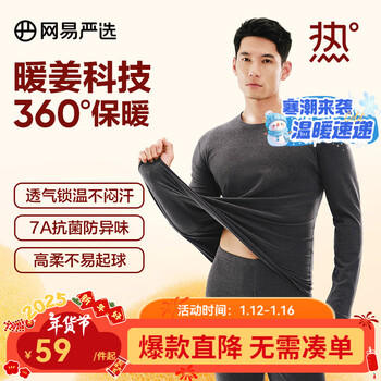 网易严选7A抗菌暖姜蓄热保暖内衣套装轻薄保暖裸感舒适弹力贴身秋衣秋裤 【7A抗菌暖姜内衣】星河灰-男 L