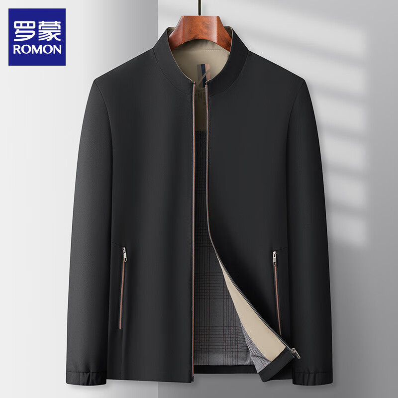 罗蒙(ROMON)夹克外套男士2025秋季新款中年商务休闲爸爸装立领茄克衫上衣男 黑色 XL (180) (建议体重135-150斤)