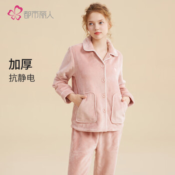 都市丽人内衣女士家居服睡衣加绒情侣法兰绒长袖睡衣套装2H3024