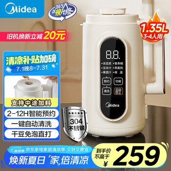 美的(Midea)豆浆机破壁机1.35L大容量4-5人轻音降噪 小型家用全自动免煮细腻免滤榨汁机料理机 国家补贴DG01