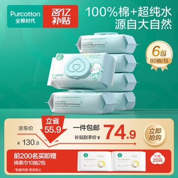 全棉时代婴儿湿巾新生儿洗脸巾手口湿纸巾成人可用100%纯棉 80抽*6包