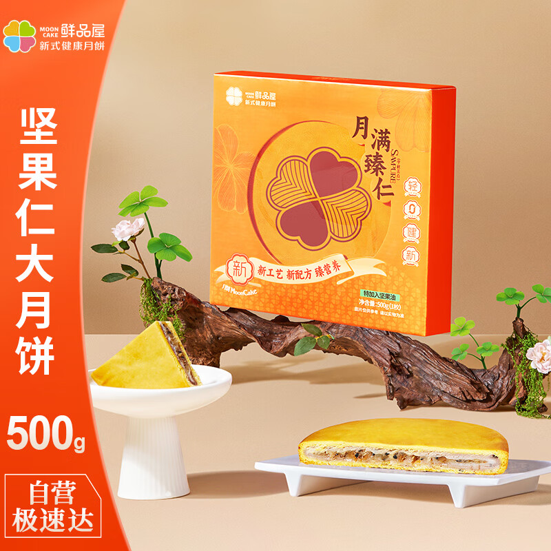 鲜品屋坚果仁油月饼500g网红中秋团圆大月饼节日礼品企业团购福利
