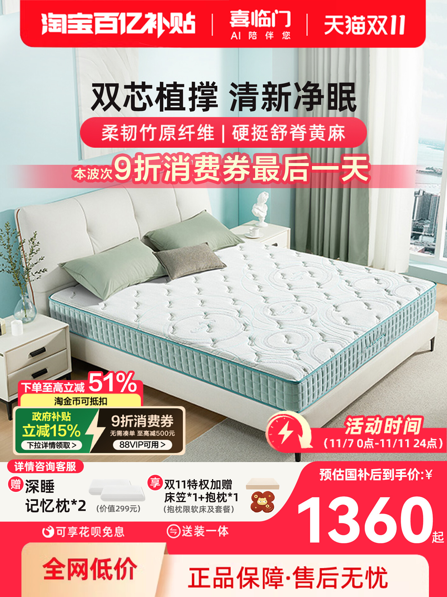 【光年护脊3.0】喜临门主卧透气席梦思偏硬舒脊黄麻独袋弹簧床垫