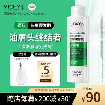 薇姿(VICHY)DERCOS 去屑清爽洗发水 绿标 200ml 严重头屑油性头皮 去屑控油