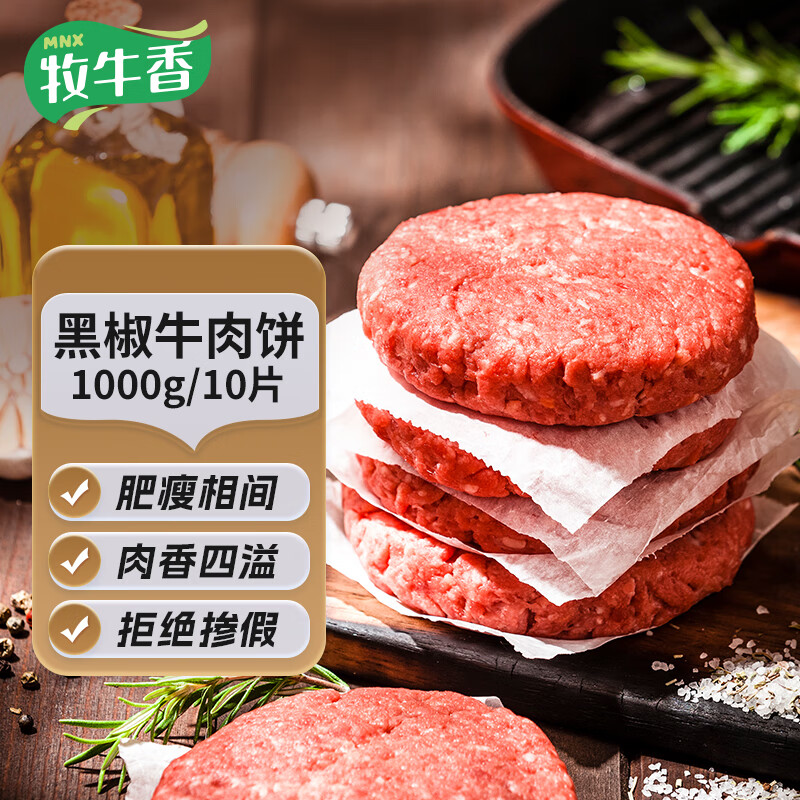 牧牛香新疆黑椒牛肉饼 早餐汉堡牛肉饼 整肉绞碎 100g*10片 源头直发