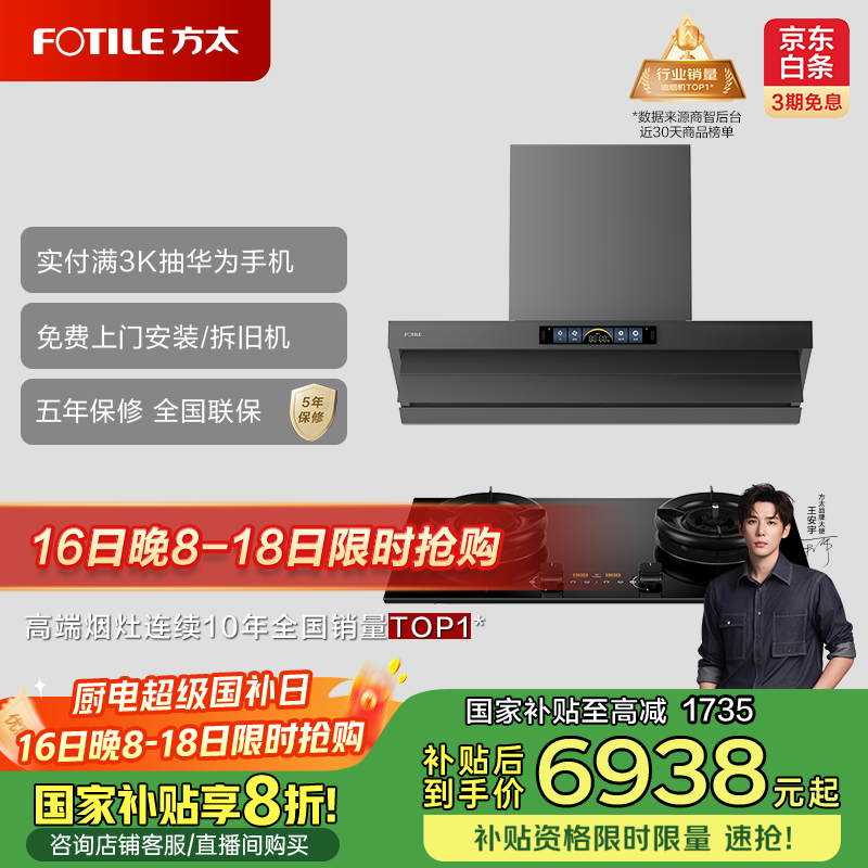 方太(FOTILE)抽吸油烟机灶具家用 顶侧一体平嵌28风量+升级70%热效率定时防干烧双功能灶 V1S-G+03-TEK20套装