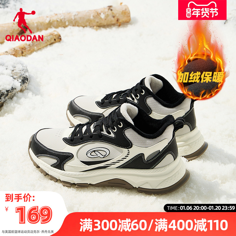 乔丹棉鞋男2025冬季户外高帮加绒保暖运动鞋子皮面防水黑色休闲鞋