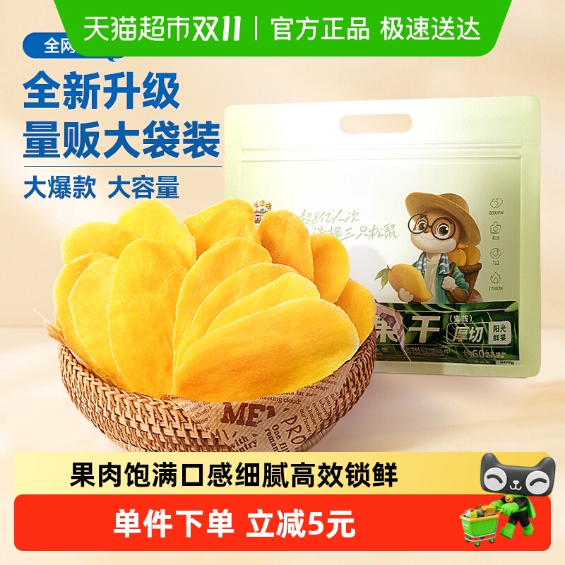 三只松鼠芒果干量贩袋装500g水果干蜜饯果脯水果干网红休闲零食