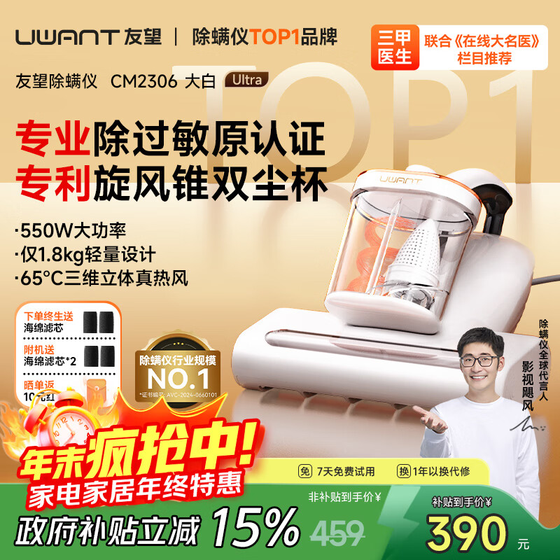 uwant央妈节目推荐【除螨又除毛】友望除螨仪大白MAX宠物家用大吸力超声波除螨虫吸尘床宝高温杀菌神器 大白Ultra