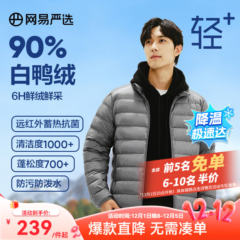 网易严选【轻+7.0pro】90白鸭绒轻薄羽绒服排骨羽绒服云感保暖抗菌 立领*幻影灰 L