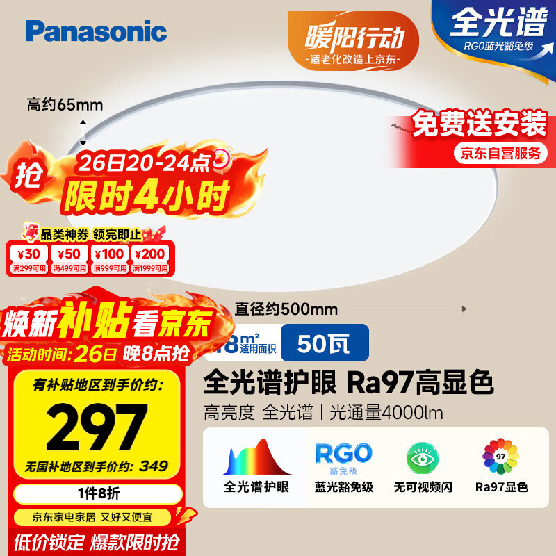 松下(Panasonic)吸顶灯卧室灯全光谱智能护眼灯50瓦HHXS5185T