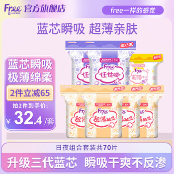 FREE卫生巾日用夜用组合套装超薄棉柔表层姨妈巾女学生M巾 日夜组合套装共70片