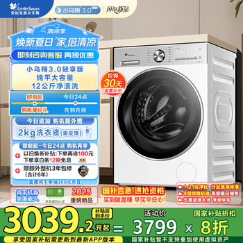 小天鹅(LittleSwan)滚筒洗衣机全自动家用 纯平全嵌【小乌梅3.0轻享版 TG12VE10PRO】家电国家补贴20% 以旧换新 超薄