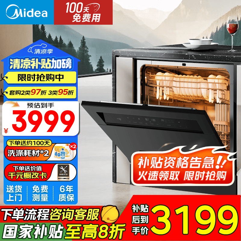 美的(Midea)【万向X6S Max】洗碗机嵌入式18套七星消杀四星消毒一键洗烘蒸汽单消毒UV杀菌105℃热风烘干不锈钢 【国家补贴20%】【100天免费用】