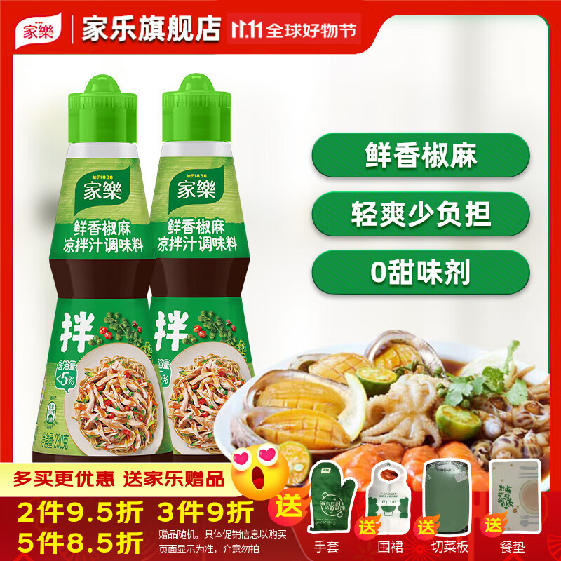 家乐旗舰店家乐鲜香椒麻酸辣减油麻辣海鲜鲜爽0脂捞汁凉拌菜调料汁 家乐鲜香椒麻凉拌汁230克*2
