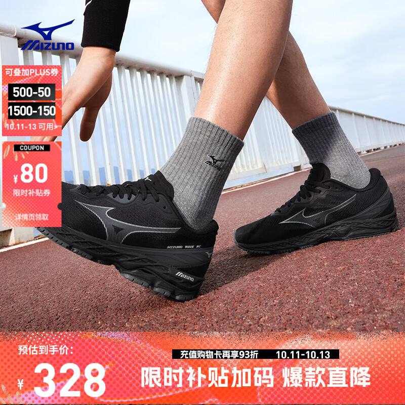 美津浓(MIZUNO)2025新款缓震回弹透气耐磨竞训运动跑步鞋WAVE RC 01/黑色 42