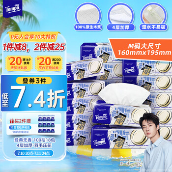 得宝(TEMPO)一博同款 抽纸 M码 无香4层100抽*18包 新旧包装混发 纸巾卫生纸