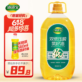 道道全菜籽油 食用油 双低压榨菜籽油 优质原料非转基因 5L*1桶