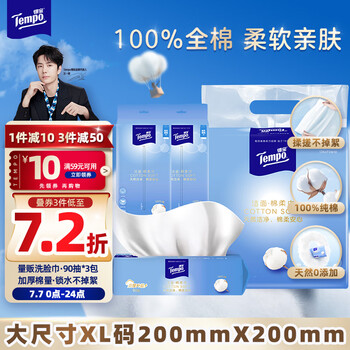 得宝(TEMPO)一博同款 洗脸巾 90抽*3包 锁水不掉絮 干湿两用洁面巾 棉柔巾