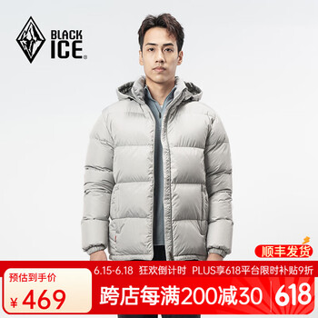 黑冰25新款羽绒服700蓬鸭绒男款加厚防风保暖羽绒服经典款外套 灰白 M