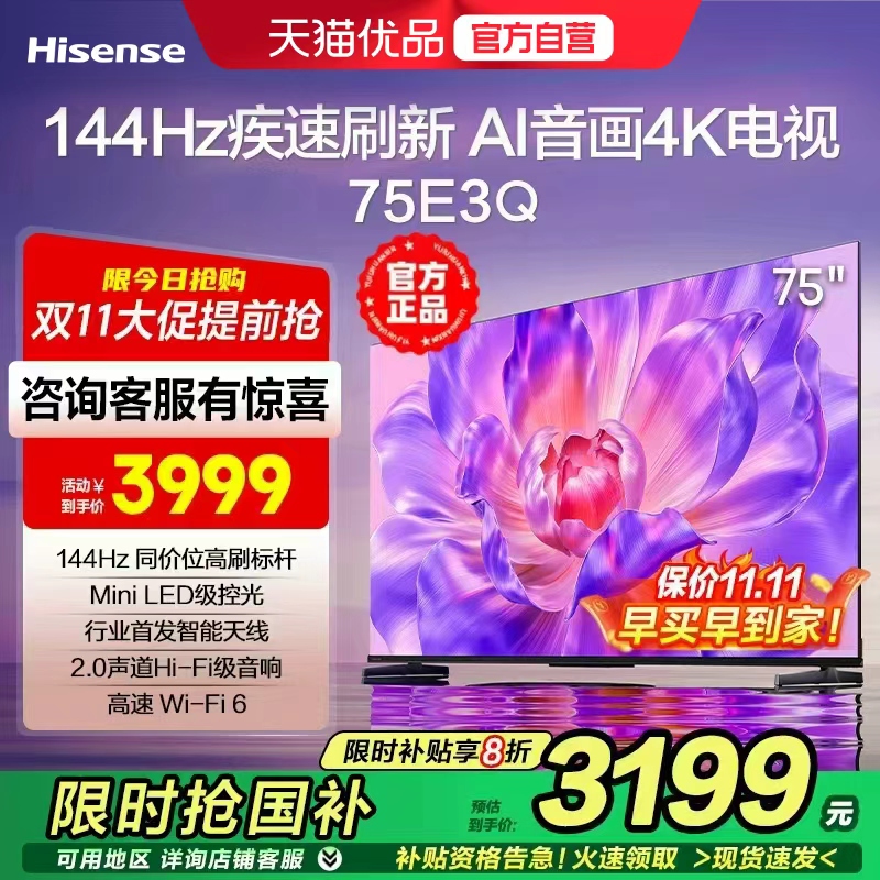 海信电视75E3Q 75英寸 AI智能高刷 Wi-Fi 6 液晶家用以旧换新补贴