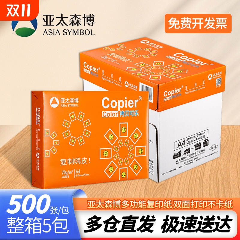 亚太森博橙拷贝可乐a4打印纸70g 双面复印纸办公用纸学生学习A4纸纸草稿纸 500张/包 整箱5包 木浆纸实惠包邮