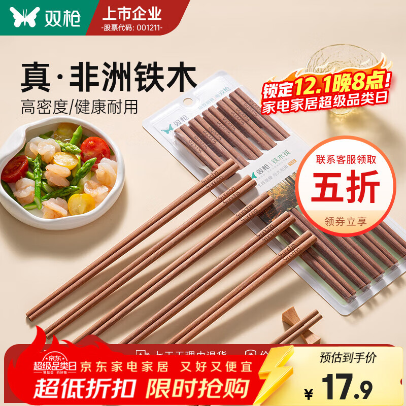 双枪铁木筷子家用2025新款高档抗菌防霉防滑木质快筷子油炸耐高温 【0漆0蜡】10双铁木筷/25cm