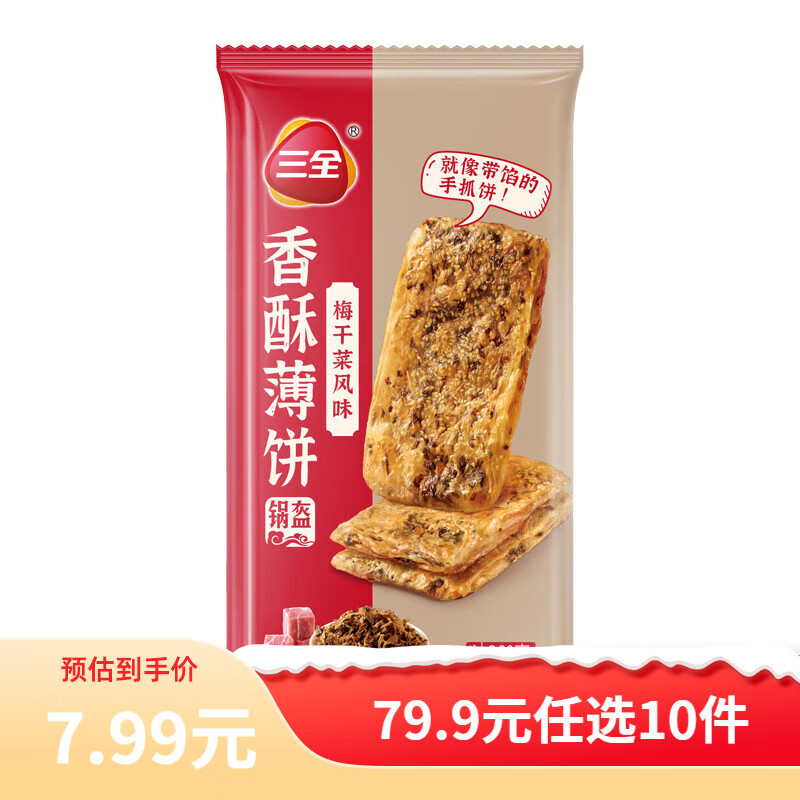 三全中式早餐包点糍粑春卷上海风味小馄饨奶黄包年夜饭半成品速食速冻 梅干菜香酥薄饼 360g/4片