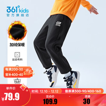 361°童装儿童针织加厚长裤男女童加绒保暖长裤2023冬季新款中大童裤子 经典黑-男童 130