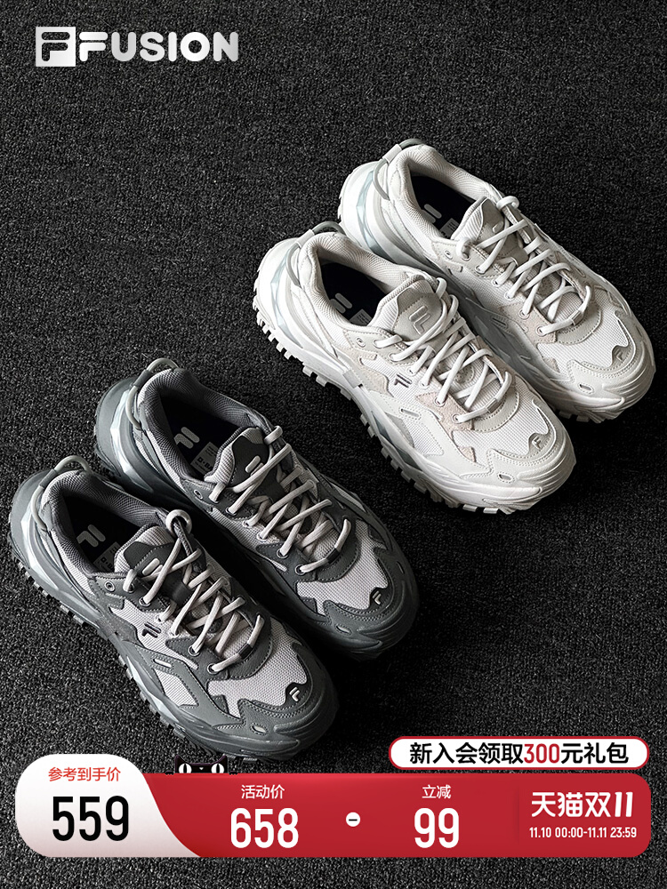 FILA FUSION 斐乐潮牌硬糖男鞋黑武士厚底老爹鞋新款男士运动鞋子