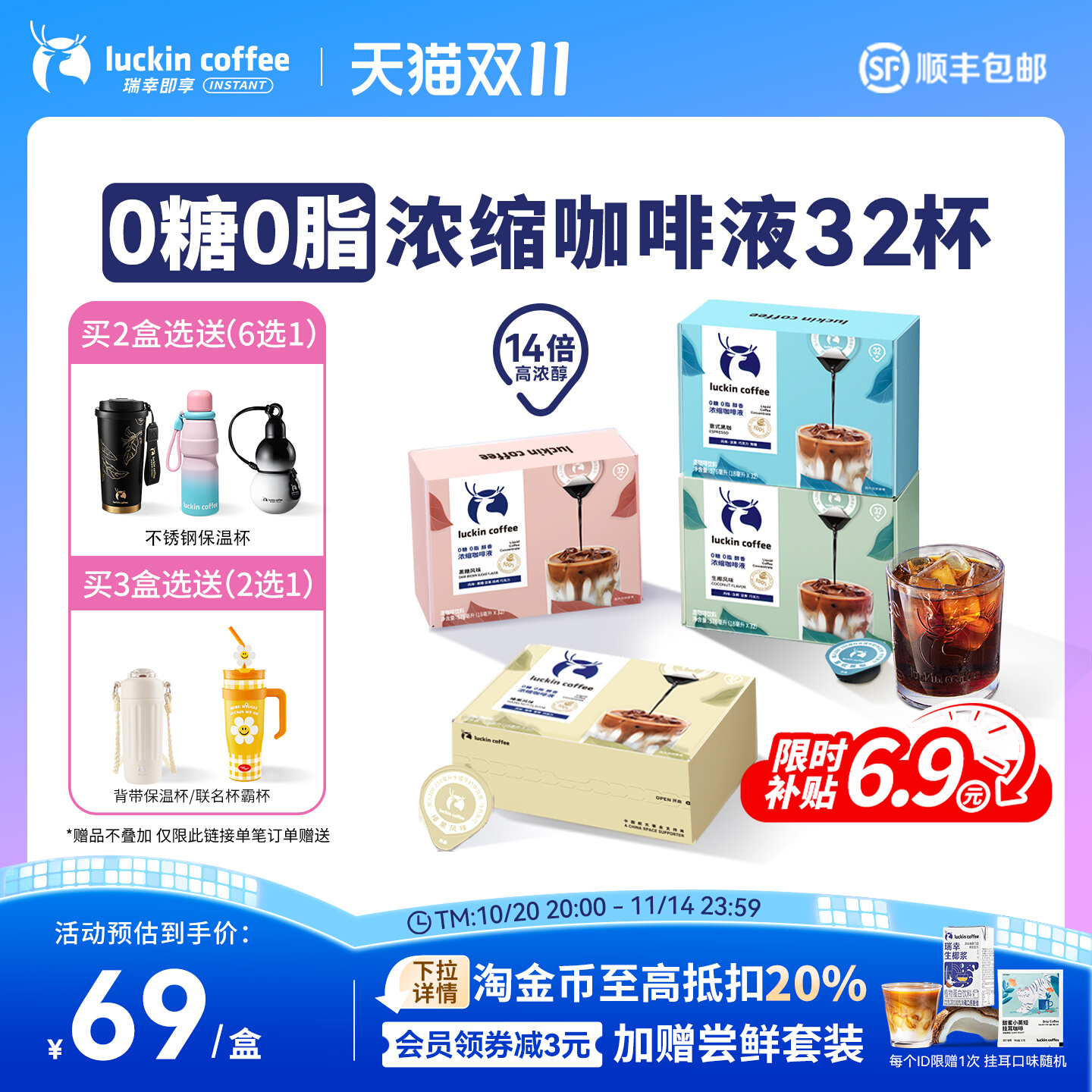 【双11限时补贴6.9】瑞幸浓缩咖啡液0糖0脂速溶冰美式无糖黑咖啡