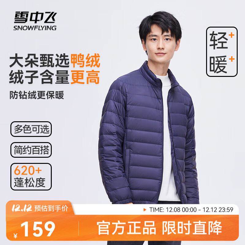 雪中飞男女立领秋羽绒百搭轻薄鸭绒立领修身轻盈隐藏式口袋 青靛蓝|5067-男 M 170/92A