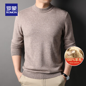 罗蒙(ROMON)【100%纯羊毛】半高领羊毛衫男2023秋冬新款纯色保暖针织打底毛衣 浅卡其 195