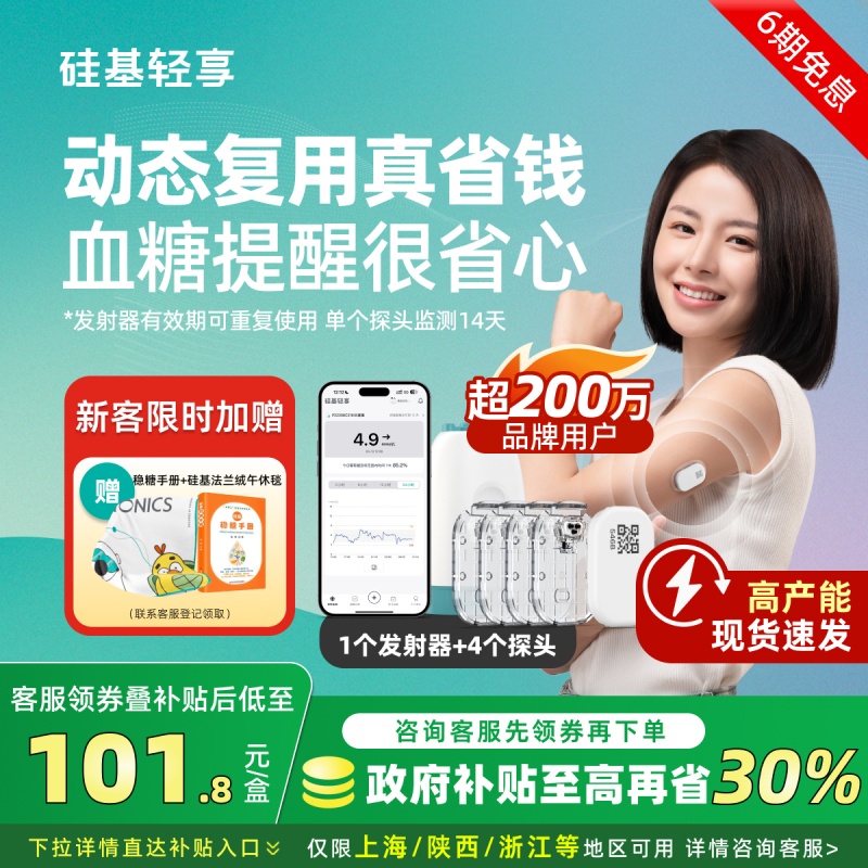 硅基轻享可复用动态血糖仪家用测试不扎针24小时持续血糖监测仪器