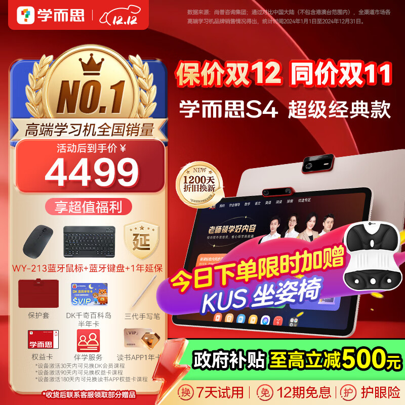 学而思学习机S4超级经典款【2025新款】AI学习机 学习平板电脑 启蒙小学初中高中 13.2英寸 8+128GB