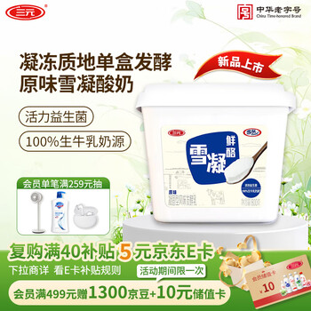 三元雪凝鲜酪 低温老酸奶风味发酵乳原味酸牛奶 800g/盒方桶酸奶