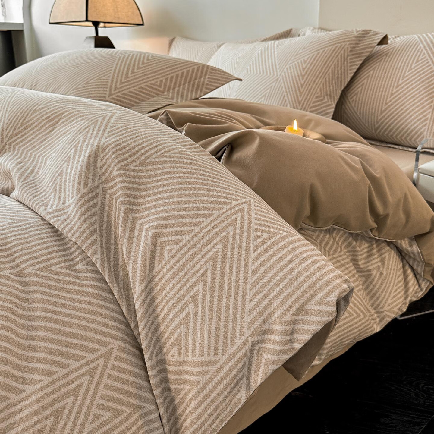AIDLIA类100%全棉磨毛四件套印花单双人四件套 D卢卡斯 1.5/1.8m床 床单款 被套200*230cm